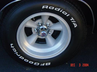 The car had the old style American mags on it when I bought it and I left them on because in the 60’s it was very common to have either the Cragars or the American mags on cars and so I thought it was appropriate. And besides, the mags look real good on a big black car because it breaks up all of the black. I feel the mags look better than the stock hubcaps that came flying off in the Bullitt chase scene. | |